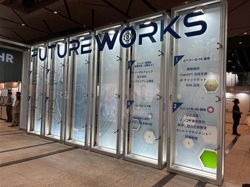 エイコーHR戦略ブースでは、ブランディングやHR領域であるタレントマネジメントシステム、研修制度など、福利厚生として、本の要約サービスや社員のマネーリテラシー向上の取り組みなどご紹介し、導入前後の変化なども含めお伝えしました。